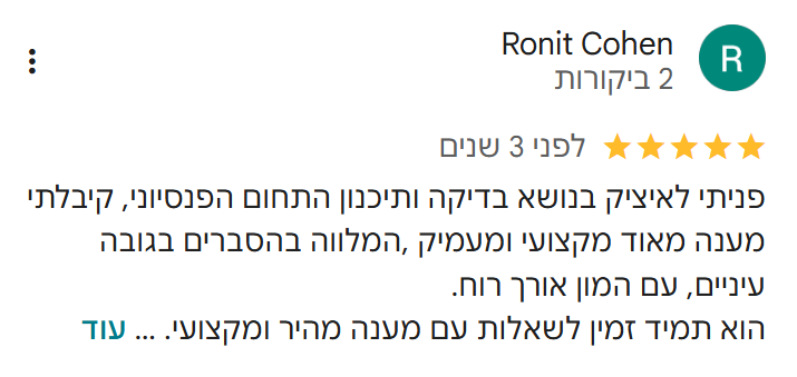 ידע פיננסי פרקטי, ליווי אישי צמוד, והתחשבות מלאה